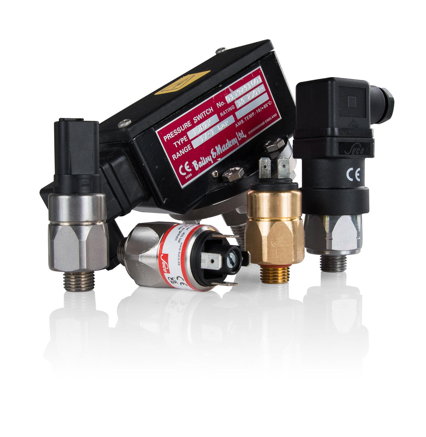 De elektriska kontakterna sitter direkt monterade alternativt påverkas direkt av membranet eller kolven. Vakter har alltså ingen mikrobrytare utan måste beställas i normalt öppen eller normalt sluten version